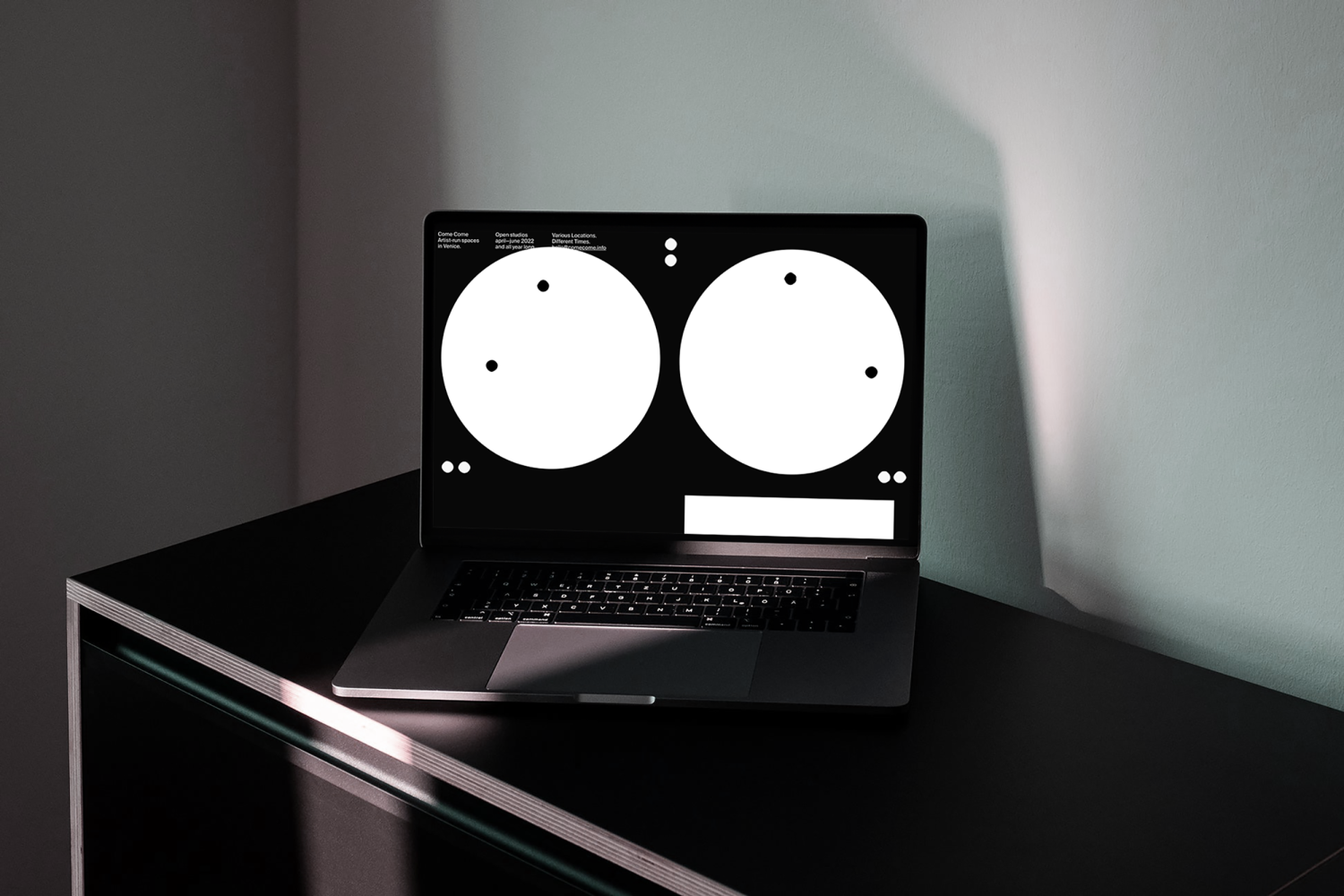 The homepage of the website and its typography is a deconstructed version of store hours signs. Open studios, various locations, different times.