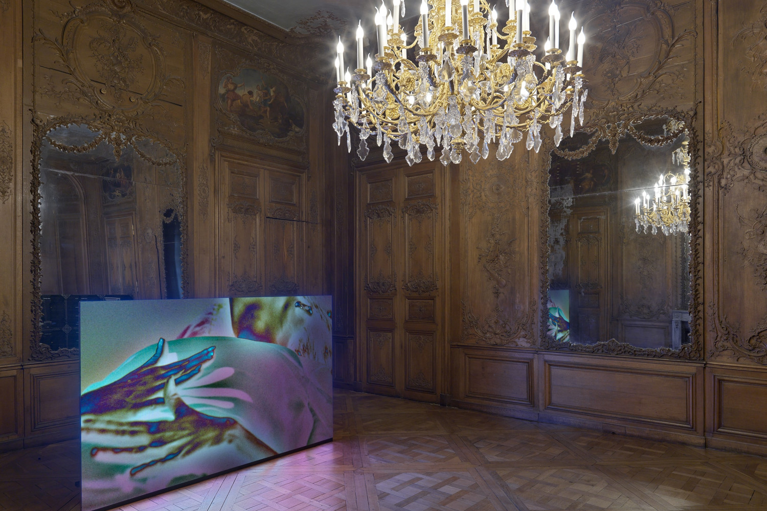 Presented for the first time at the ChΓ’teau de Rambouillet, Paroxysme is a filmic work by Isabelle Cornaro featuring sequences of images from different sources (16mm film, video, animation) relating to war, religion and seduction. On a large LED screen set up in the President's office of the Assembly apartment, these images are broadcast in a random montage controlled by an algorithm.